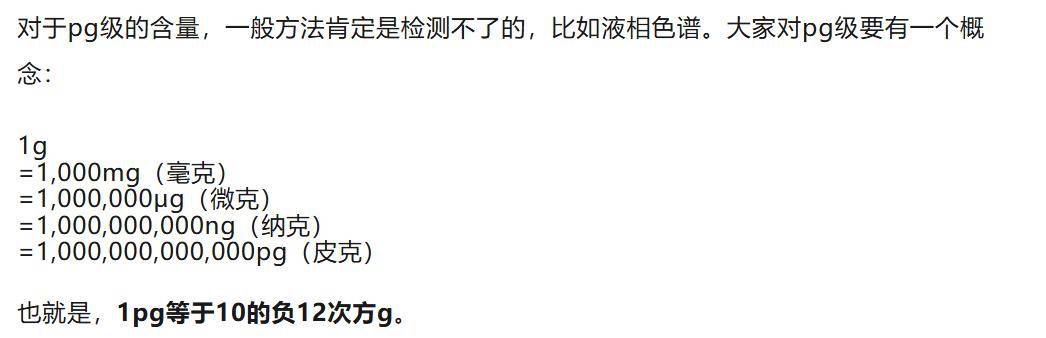 护肤科普博主、巢归研究院科学传播负责人芒奇金在与聚美丽交流时进一步指出:“0.07pg的检出量太低了,基本不太可能。检测报告也未明确标明‘检出限’,该结果的科学严谨性与真实性值得商榷。”